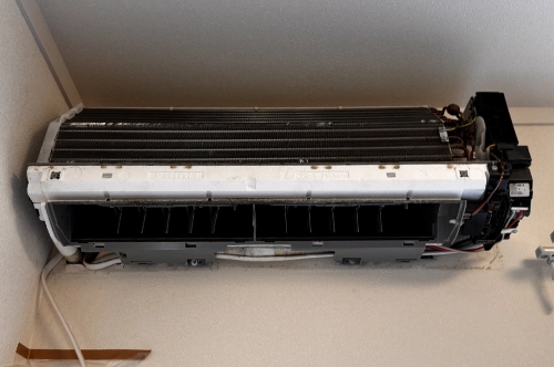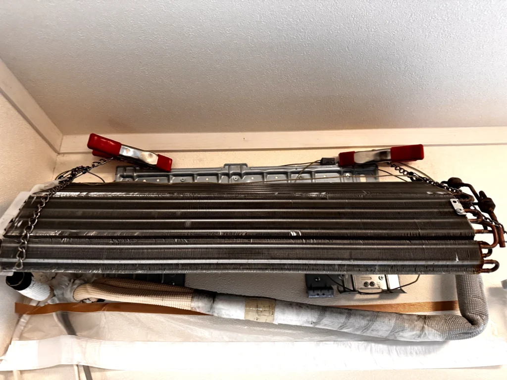 エアコンを壁に設置したまま、内部主要部品を分解する技術です。
